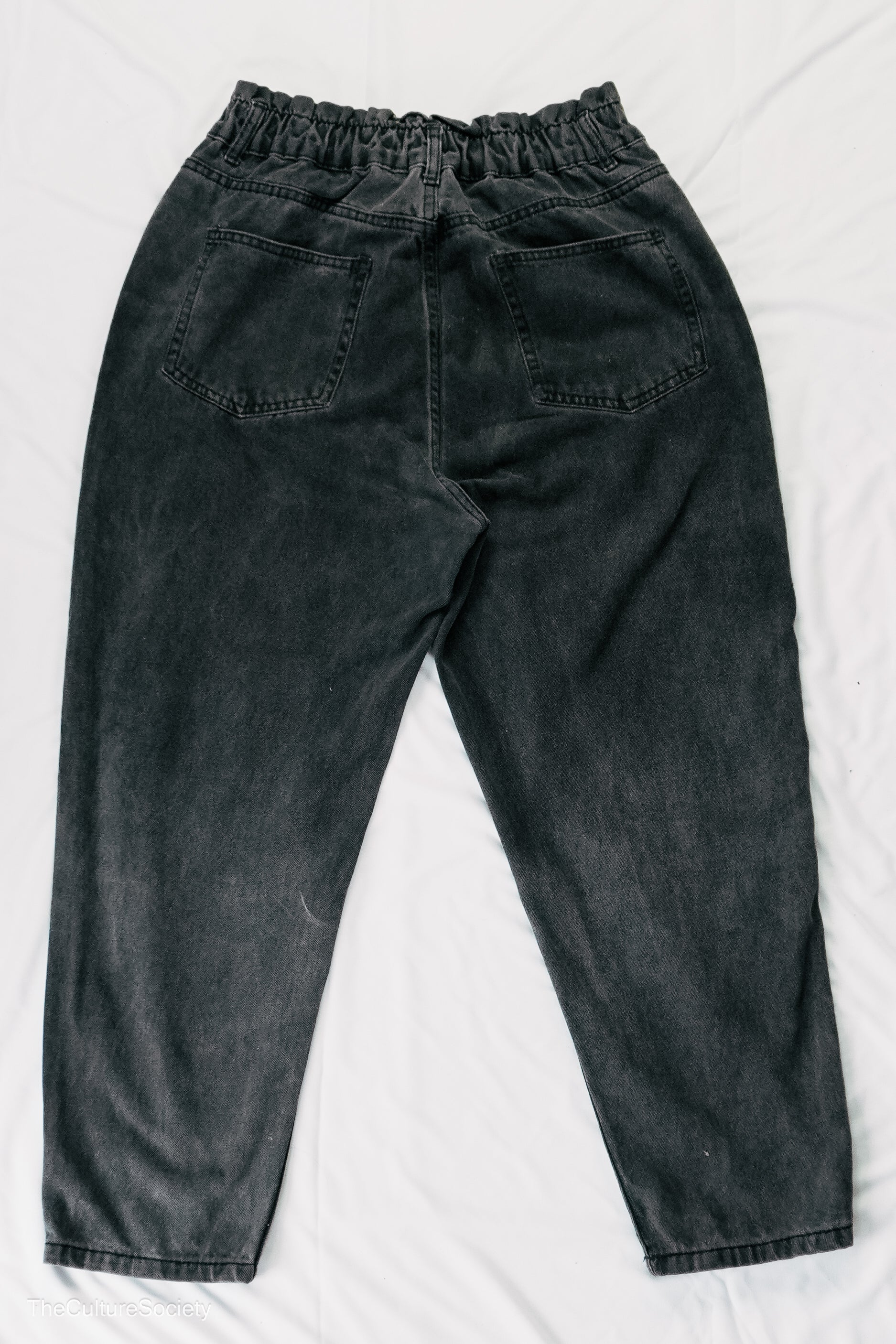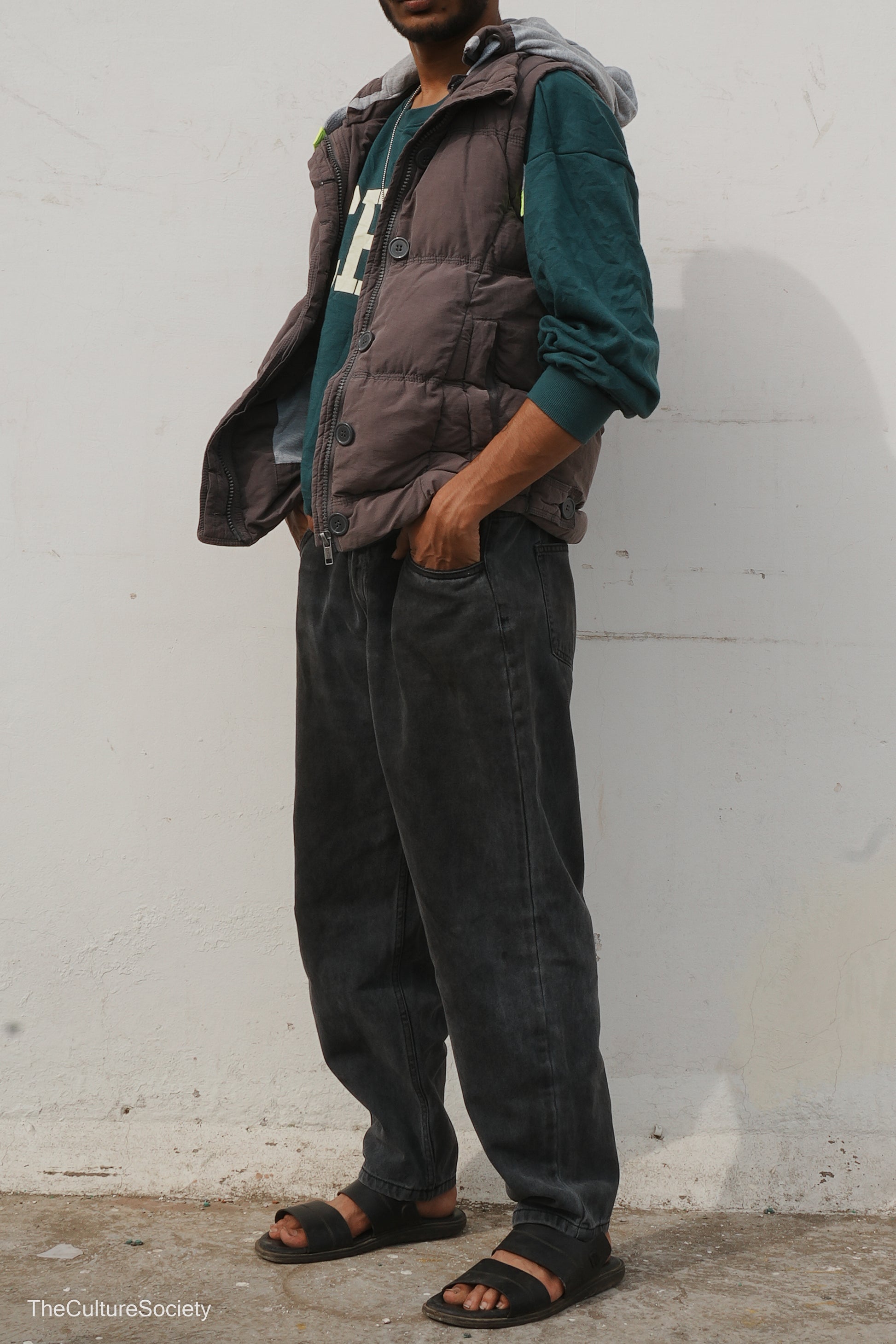 Make comfort meet casual cool with these black loose-fit denim jeans. Designed in a relaxed carrot silhouette, these jeans taper subtly at the ankle, offering a balance of freedom and structure. The stretch waistband ensures ease, while the timeless black wash keeps things effortlessly versatile for daily wear.