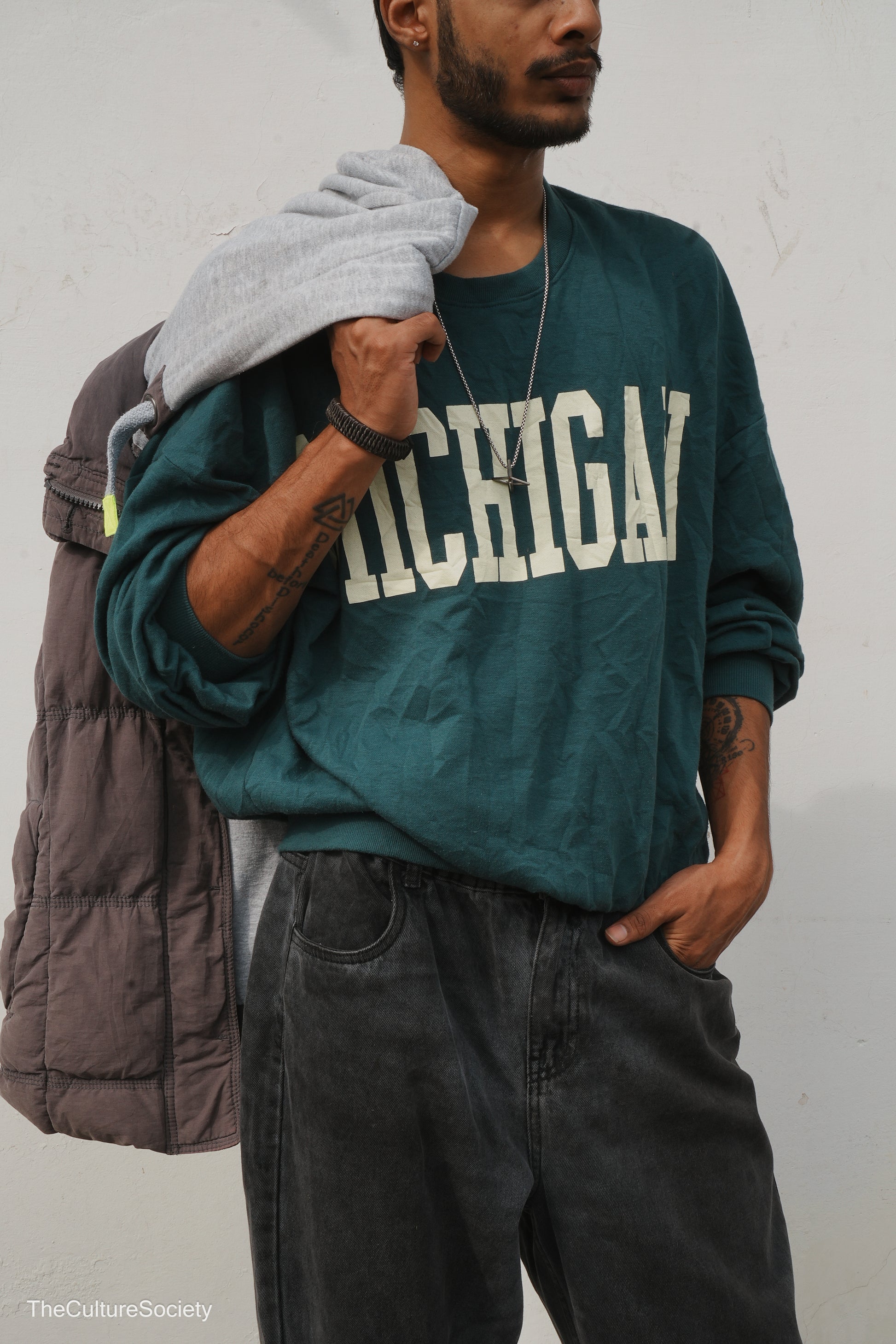 Step into everyday ease with this oversized green crewneck sweatshirt, designed for laid-back comfort and bold simplicity. Made from plush cotton fleece, it’s warm without being bulky — a go-to layering piece for breezy days or lounge-heavy weekends.