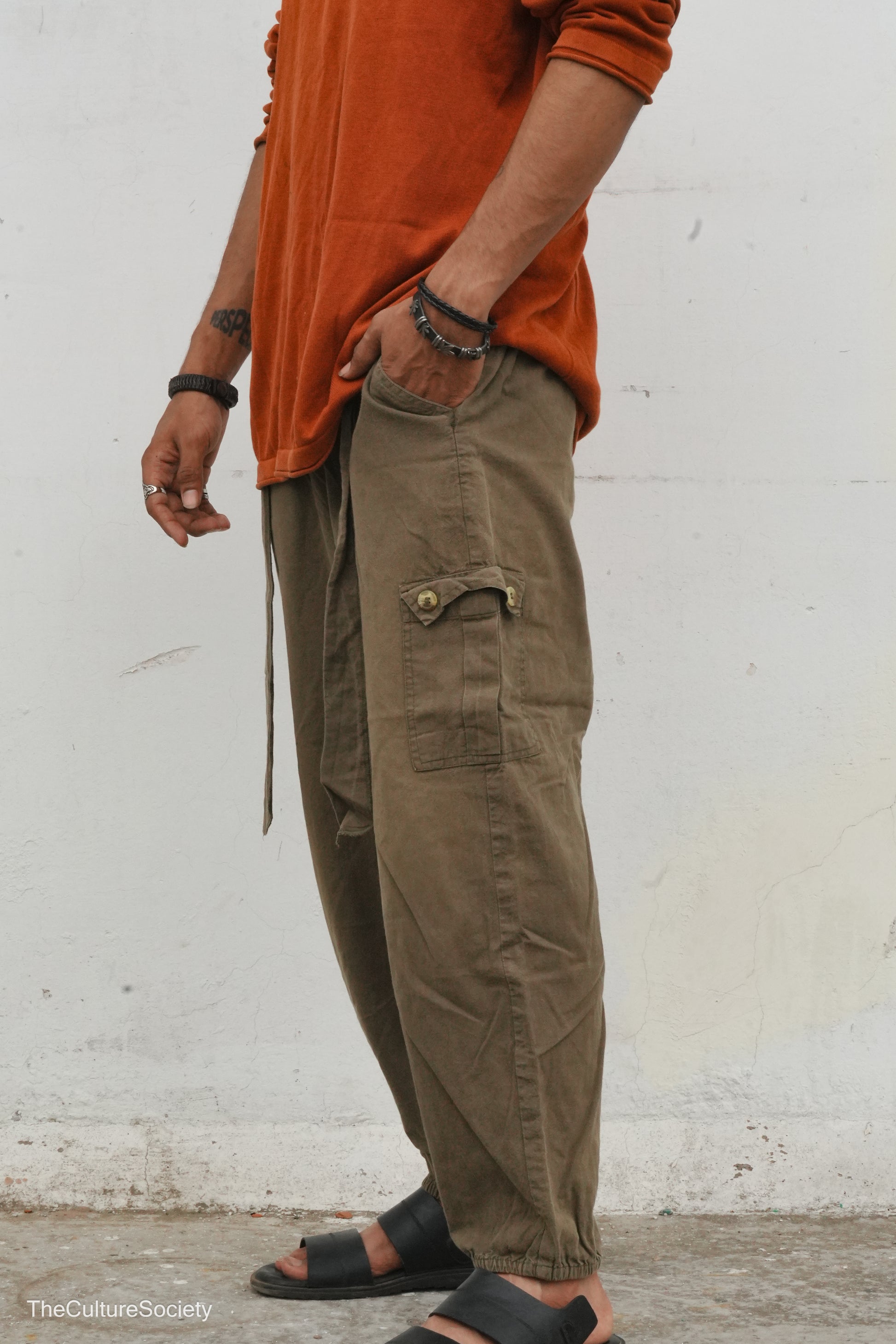 Step into rugged comfort with these olive green cargo pants — a utilitarian classic made modern. With a relaxed jogger fit, functional cargo pockets, and soft cotton fabric, these pants are built for ease and movement. Subtle hip stitching and an elastic waist add structure while keeping things laid-back and versatile.
