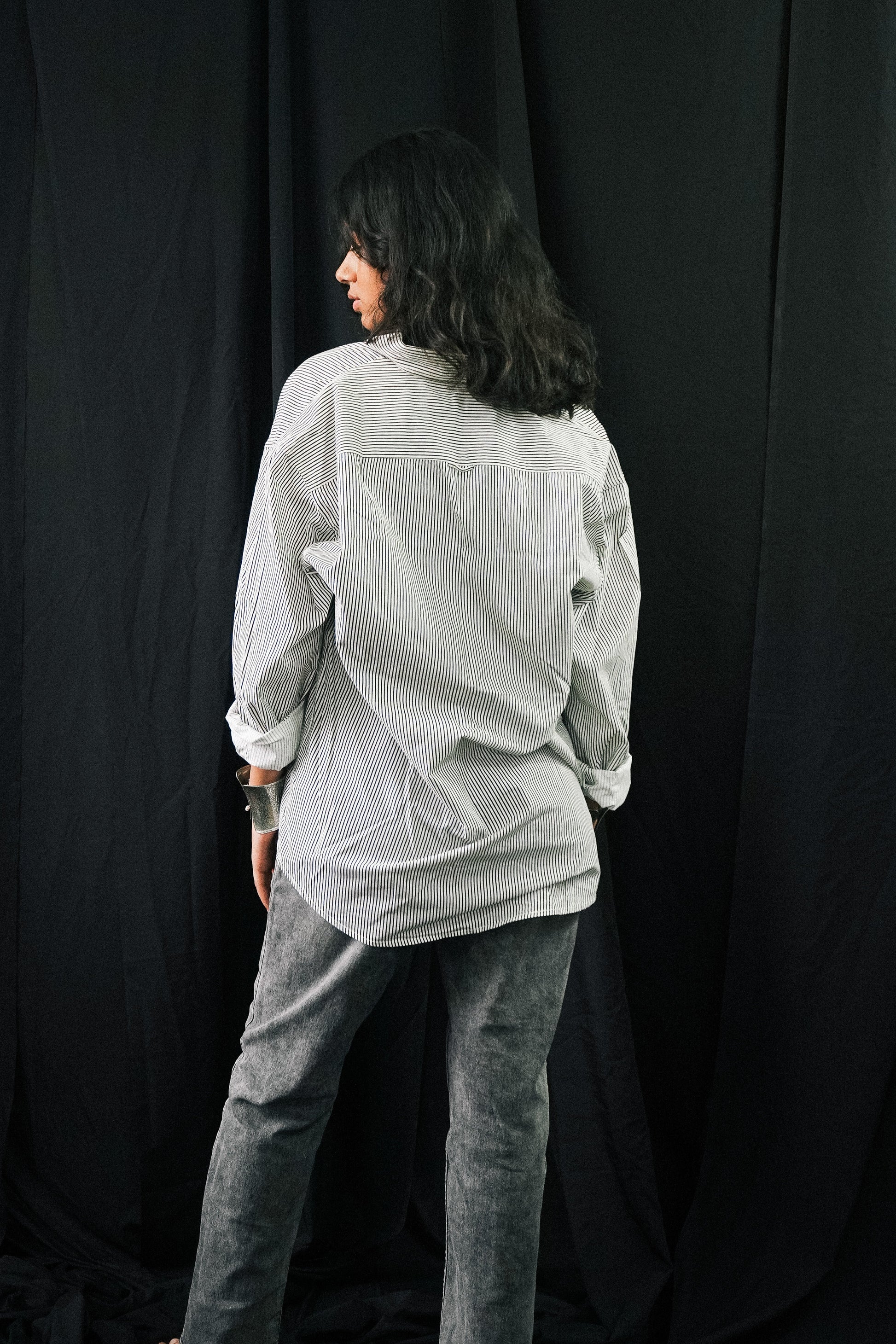 A refined classic with timeless appeal — this striped button-up shirt brings versatility and sophistication to everyday wear. Featuring alternating white and grey vertical stripes on premium cotton, it’s perfect for layering or wearing solo. Lightweight and breathable, ideal for dressing up or down.