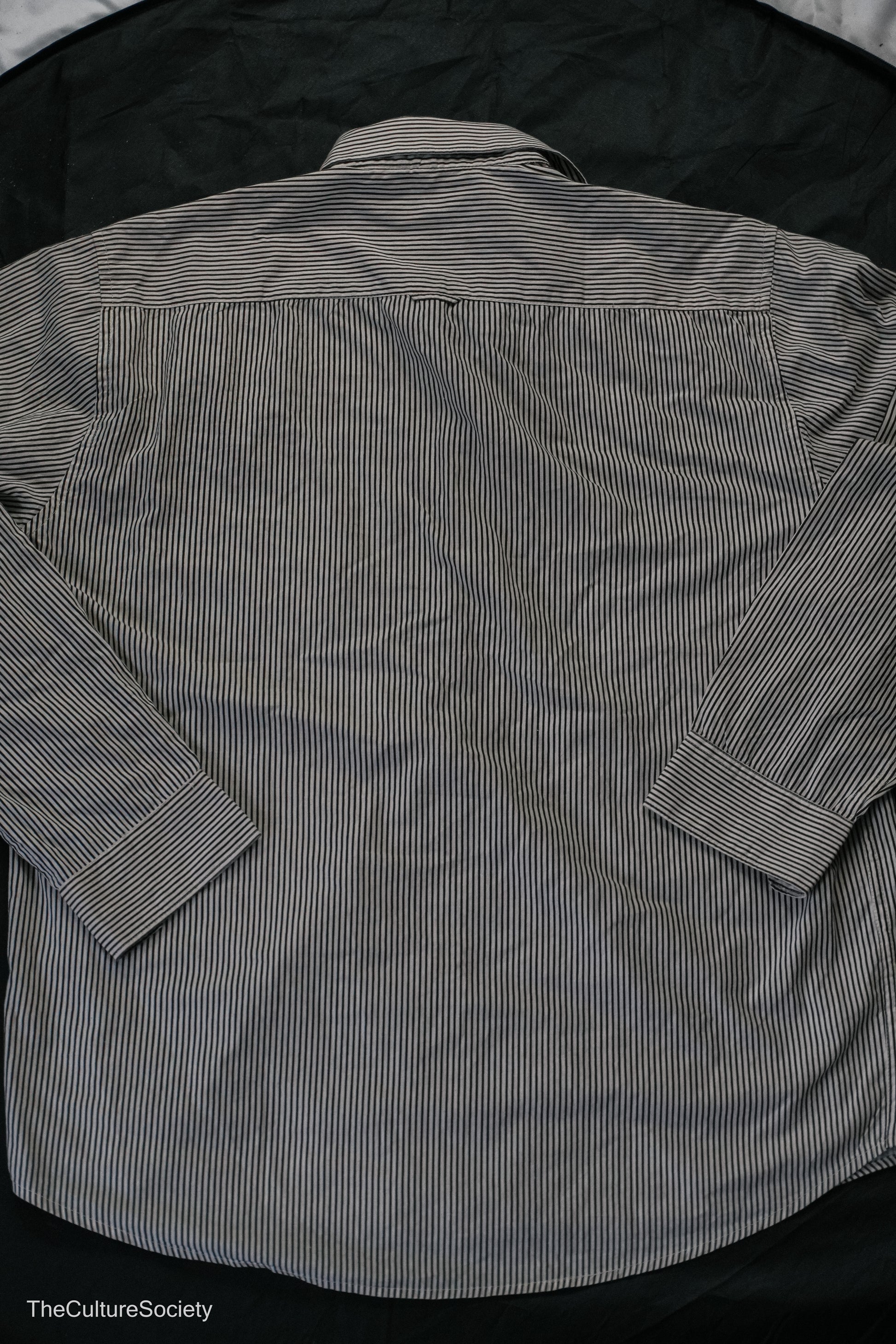 White & Grey Striped Button-Up Shirt